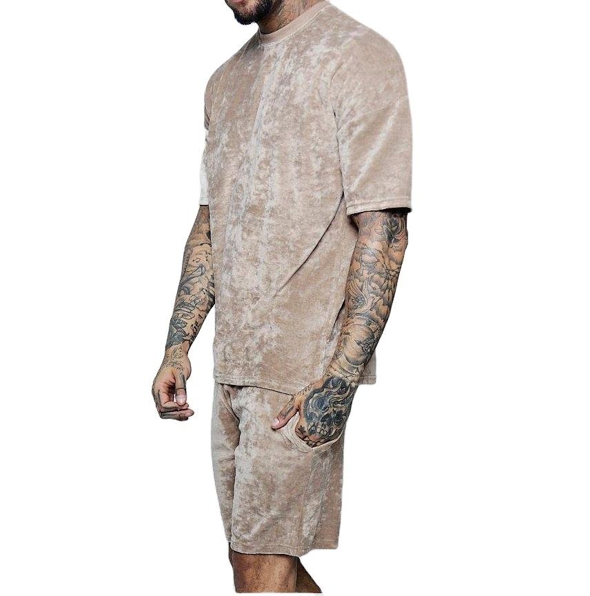 Loose Oversized Breathable Velvet T-shirt & Short Set Outerwear Sets Breathable Drop Shoulder Gym Workout Summer Mens Joggers