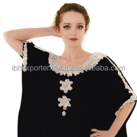 Loose Plus Size Black Kaftan for Muslim Women With Silver Embroidery and Beads Work High Quality