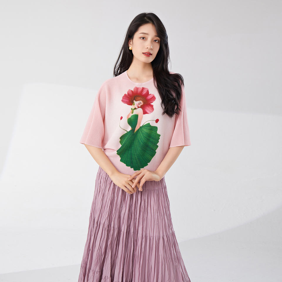 2025 Loose Women's Casual T-Shirt with New Round Neck Bat Sleeves Plus Size All-Match Pullover Fashionable Summer Printed Top
