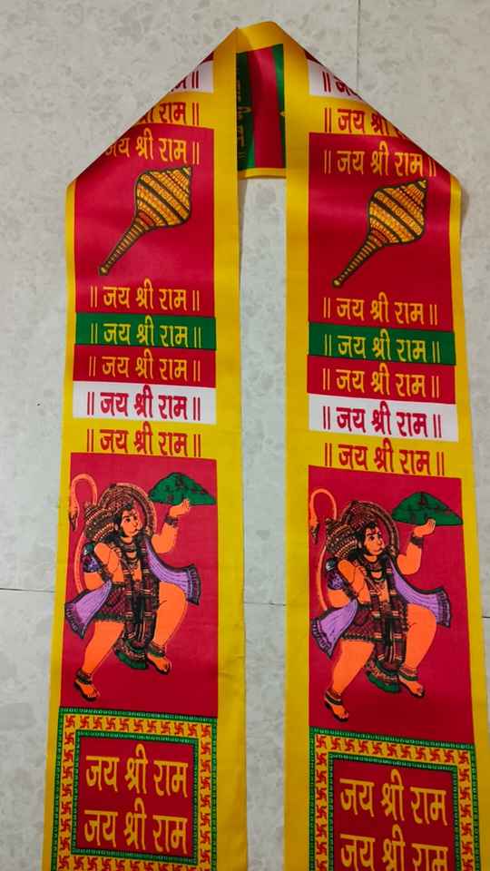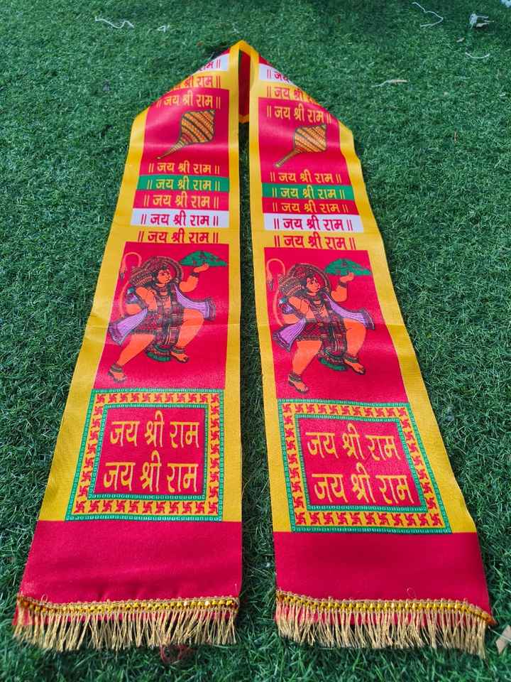 Lord of Shree Hanumanji Printed Silk Scarf Stole Dupatta Hindu Religious Pandit Dupatta Sundarkand Bhajan Favor Parna Gamcha