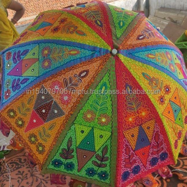 Lot of Indian Wedding Umbrella Floral Design Indoor Outdoor Decorations Embroidery Mirror Work Handmade Parasols