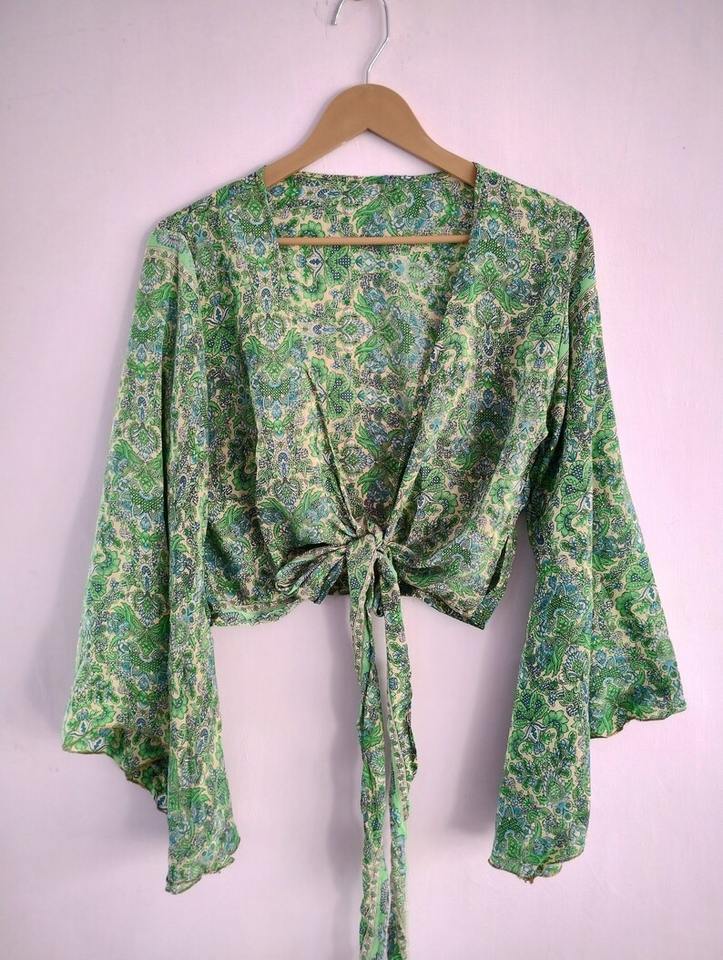 Fashion Element:Vintage, Floral Print, Crop Top, Wrap and Tie