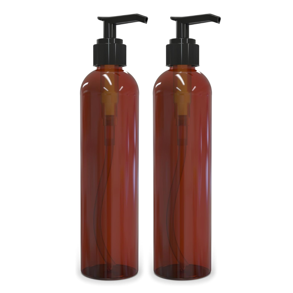 Lotion Pump Bottles Empty 8 OZ Plastic Containers Amber with Black Dispenser for Soap Shampoo Lotions Liquid Body Soap Creams