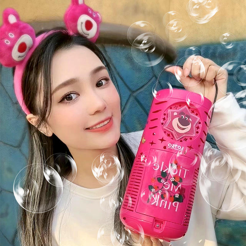Lotso Strawberry Bear Bubble Machine Automatic Pink Kids Outdoor Toy Gift For 5-7 Years Unisex Plastic