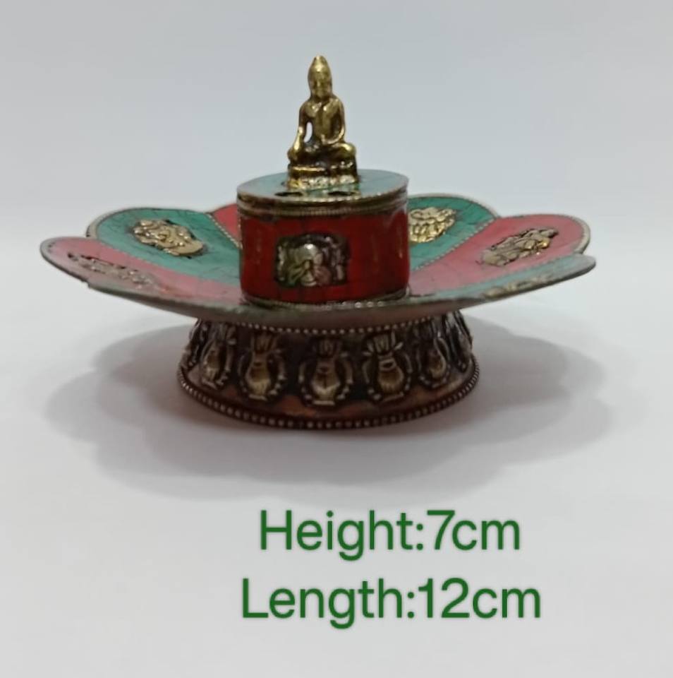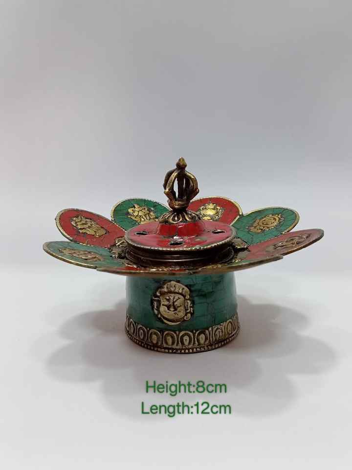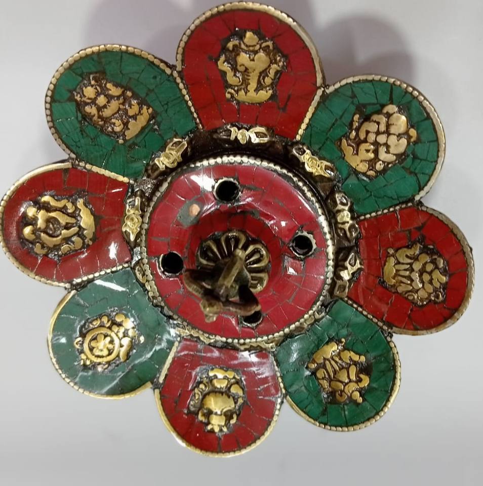 Stone Set Lotus Metal Burner:copper with Multi color stone Set