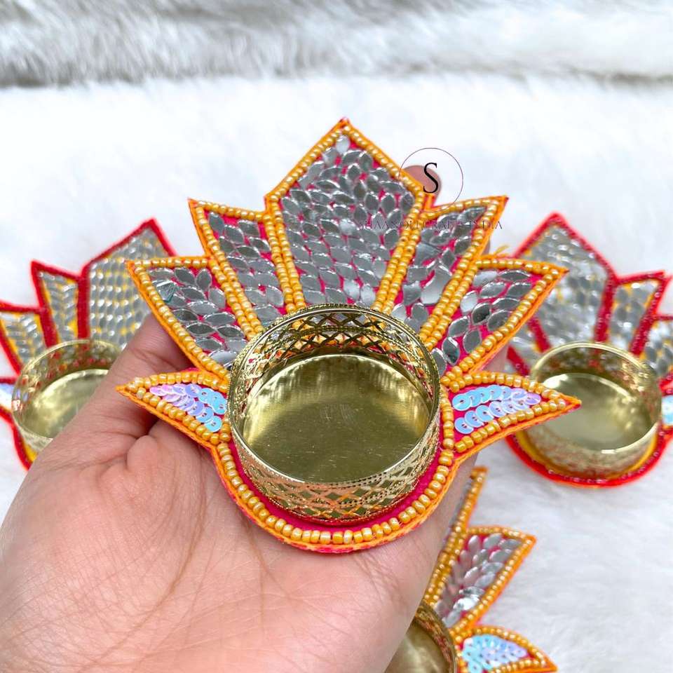 Product Name:Rangoli Artificial Pom Poms and Tea Lights Candle Holders