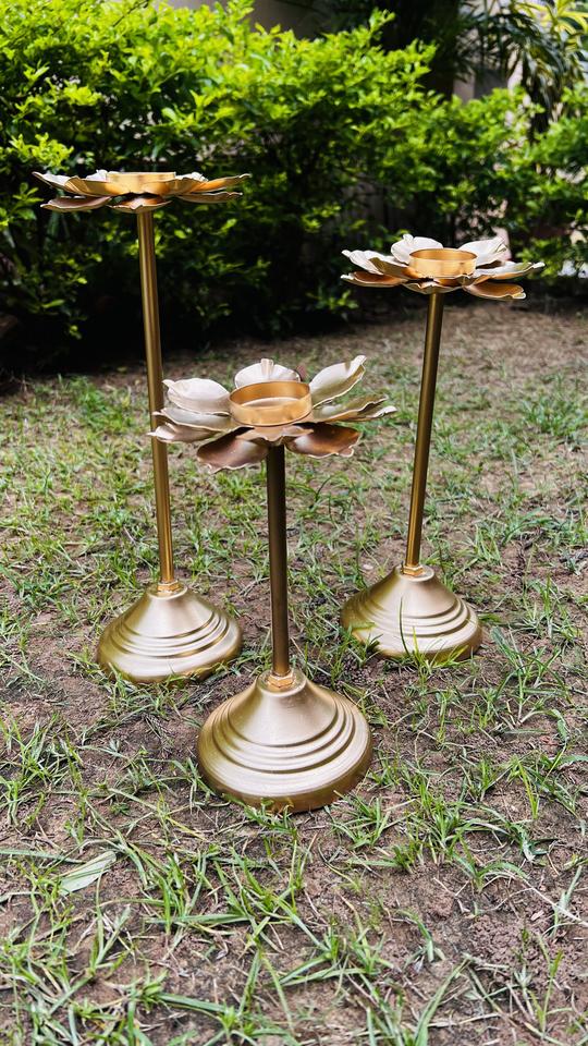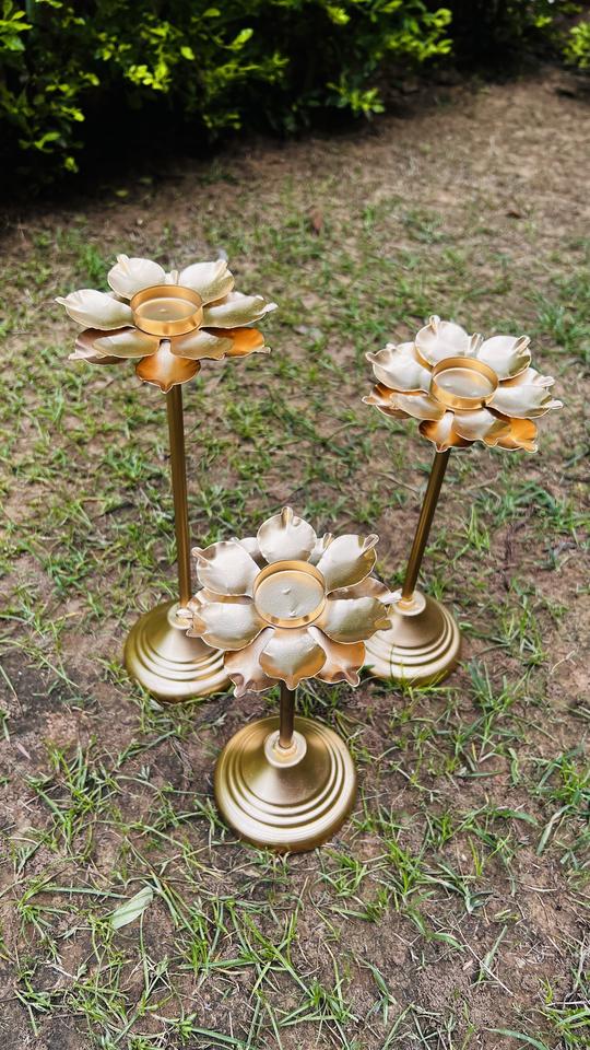Lotus Shaped Metal Pedestal Tealight Candle Holder for Christmas Home Decor Heat-Resistant