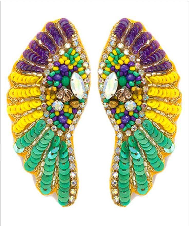 Louisiana Circle Mardi Gras cuteness seed beads new luxury beaded hand embroidery earrings design use for women and girls