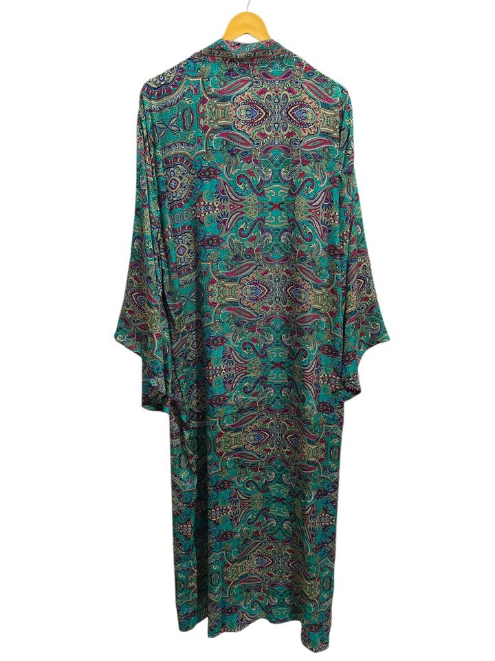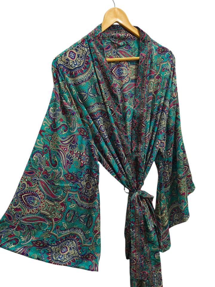 Lounge Wear Summer Kimono Ankle Length Silk Robe Multi Color Robe Night Wear Robe Indian Vintage Recycled Silk Sari Kimono,