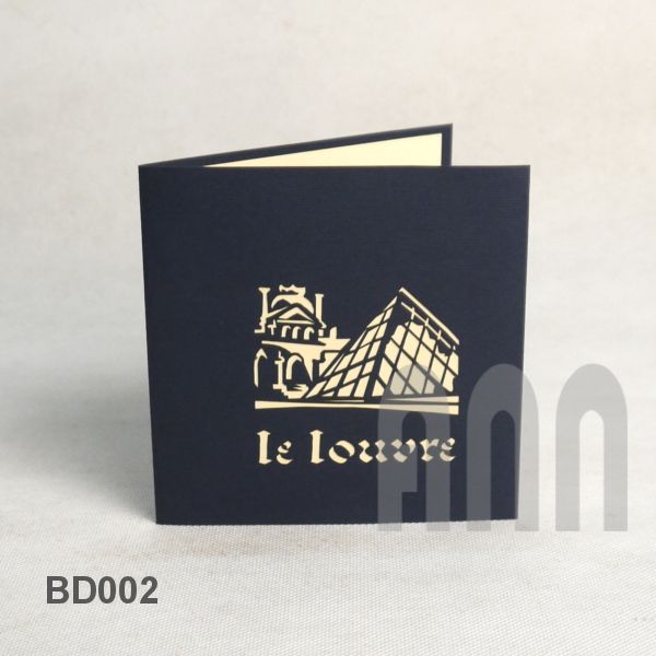 Louvre Museum 3D Pop-up Card High Quality Paper Kraft Handicraft Custom Handmade Greeting Card for Souvenir Gift/Craft Style