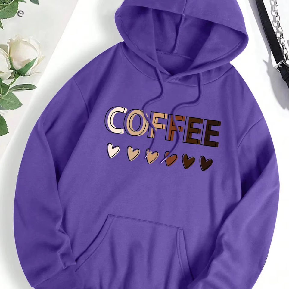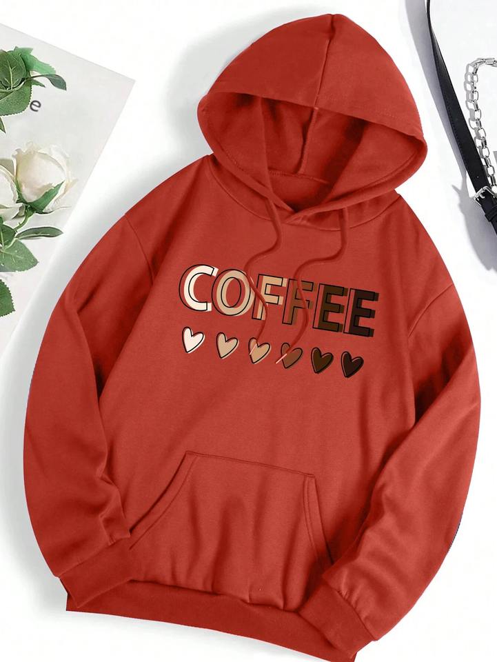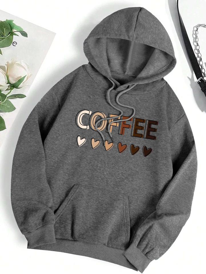 Love Coffee Funny Letter Graphic Printing Hoody Woman Fashion Fleece Sweatshirt Casual Hooded Autumn Oversized Clothing