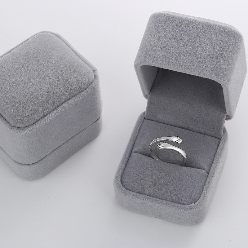 Love Embrace Couple Rings Korean Style Simple Love Fashion Open-Type Design Silver Plated Brass Wholesale Jewelry