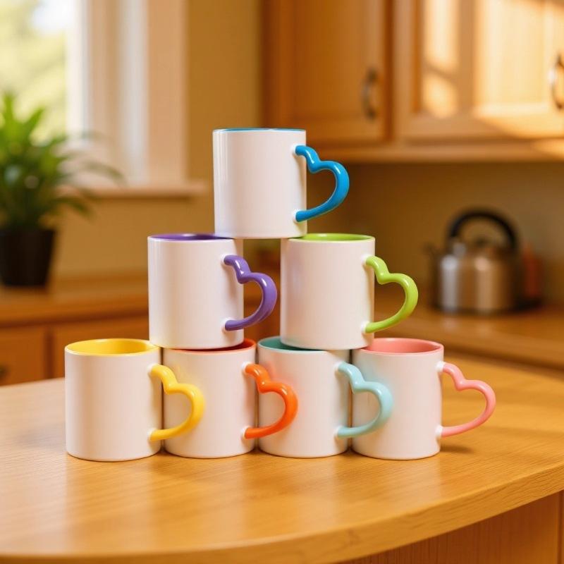 Love Handle Ceramic Mug Heart Design Colored Interior And Handle Novelty Gift For Presents Zhejiang Origin