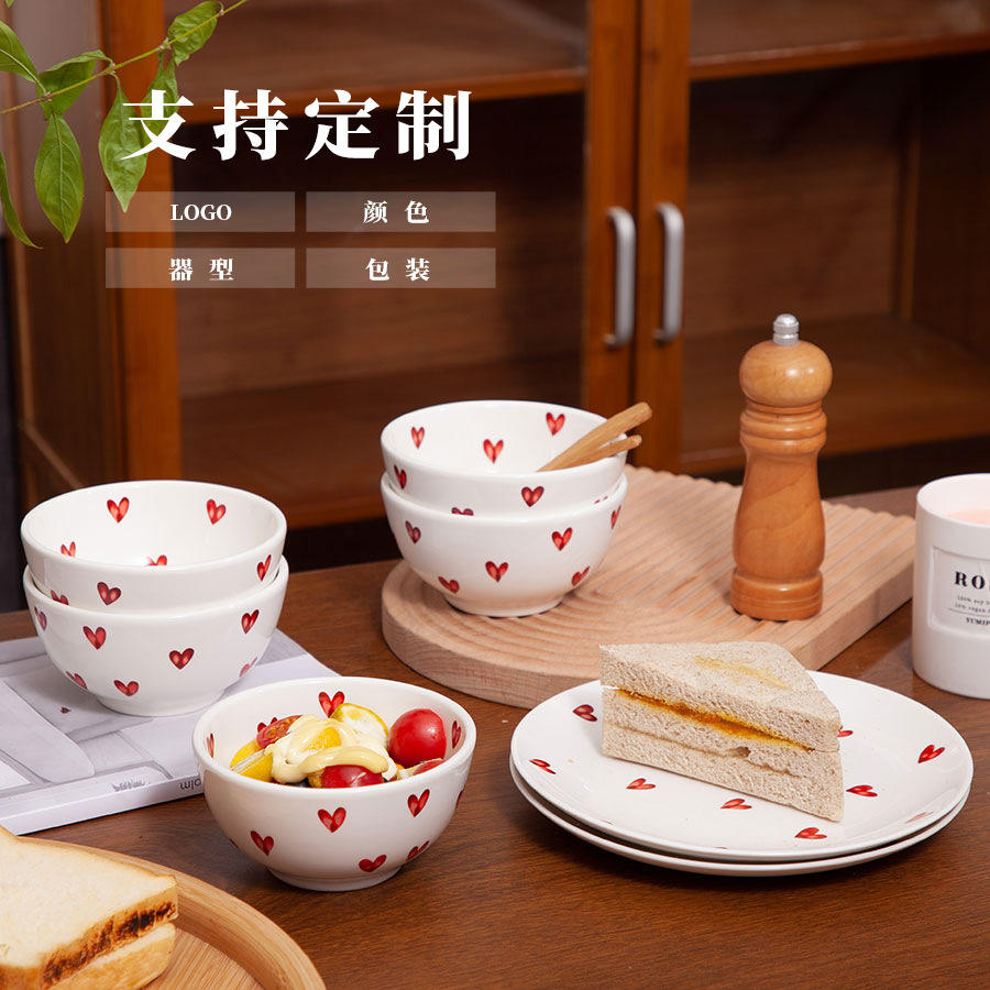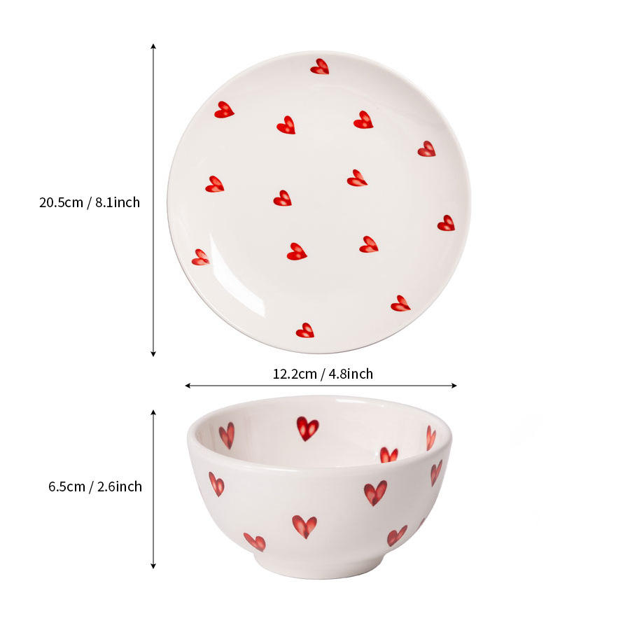 Love Heart Ceramic Bowl And Plate Set 20.5cm Round Dishware For Kitchen Home Decor Gift Spring 2024