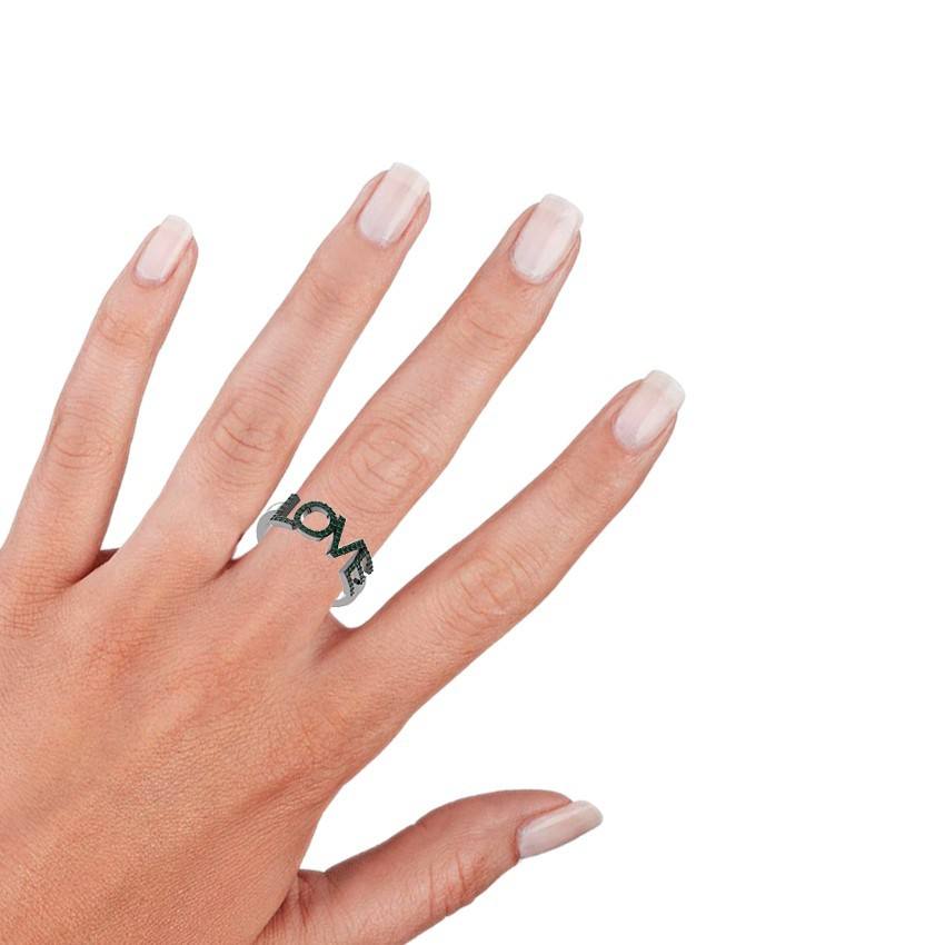 Love Sign Chrome Diopside Gemstone Pave 925 Sterling Silver Initial Ring
