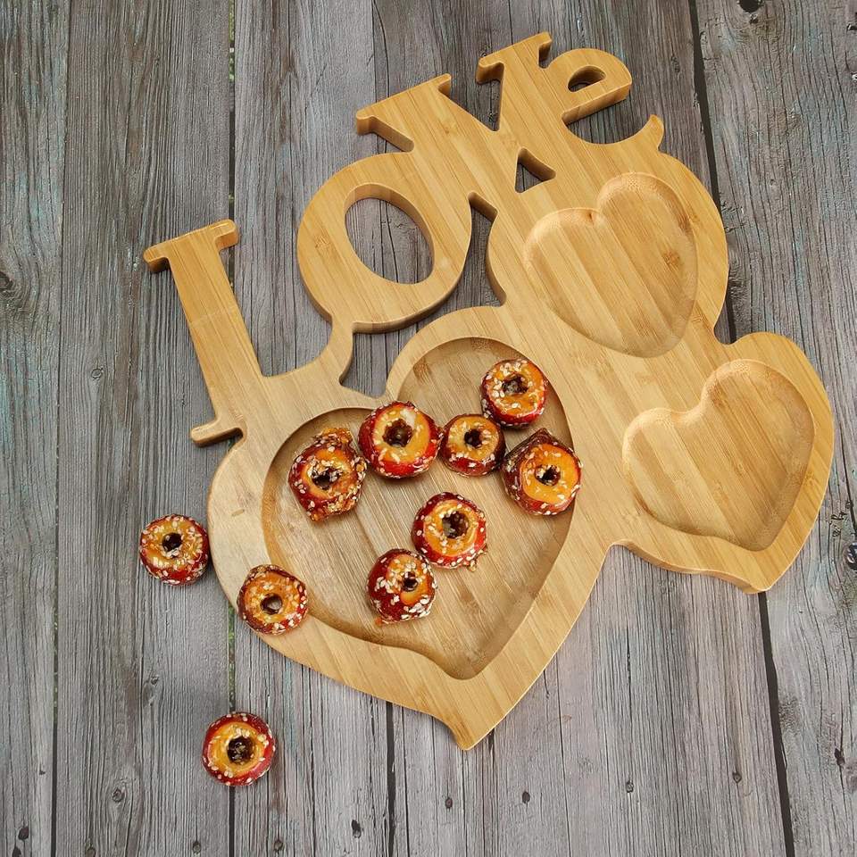 Love Wood Serving Platters Heart Wooden Trays Side Dish Serving Trays,Mother Day Table Decorations Supplies