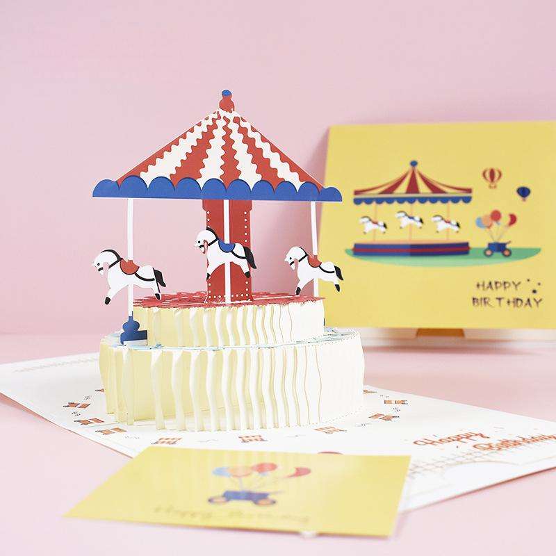 Product Name:Lovely 3D Pop up Carousel Happy Birthday Cake Greeting Card