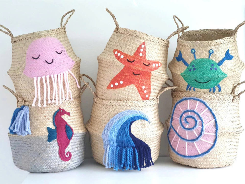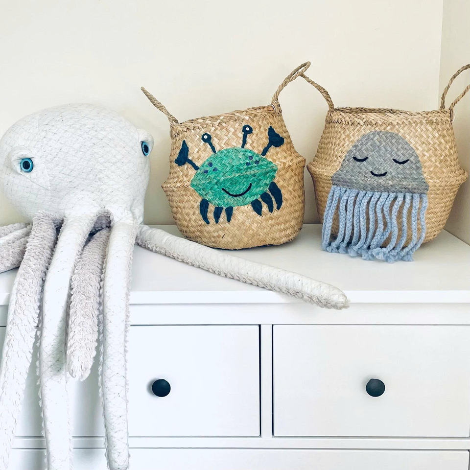 Lovely Crab Embroidered Seagrass Eco Friendly Toy Storage for Baby Room or Beach Style Home Vietnam Factory Wholesales OEM ODM