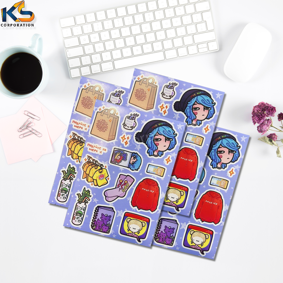 Lovely Custom Kiss Cut Sticker A4 Sheet | Waterproof Vinyl Sticker for DIY Craft & Journal Embellishment Multi-Artwork On Sheet