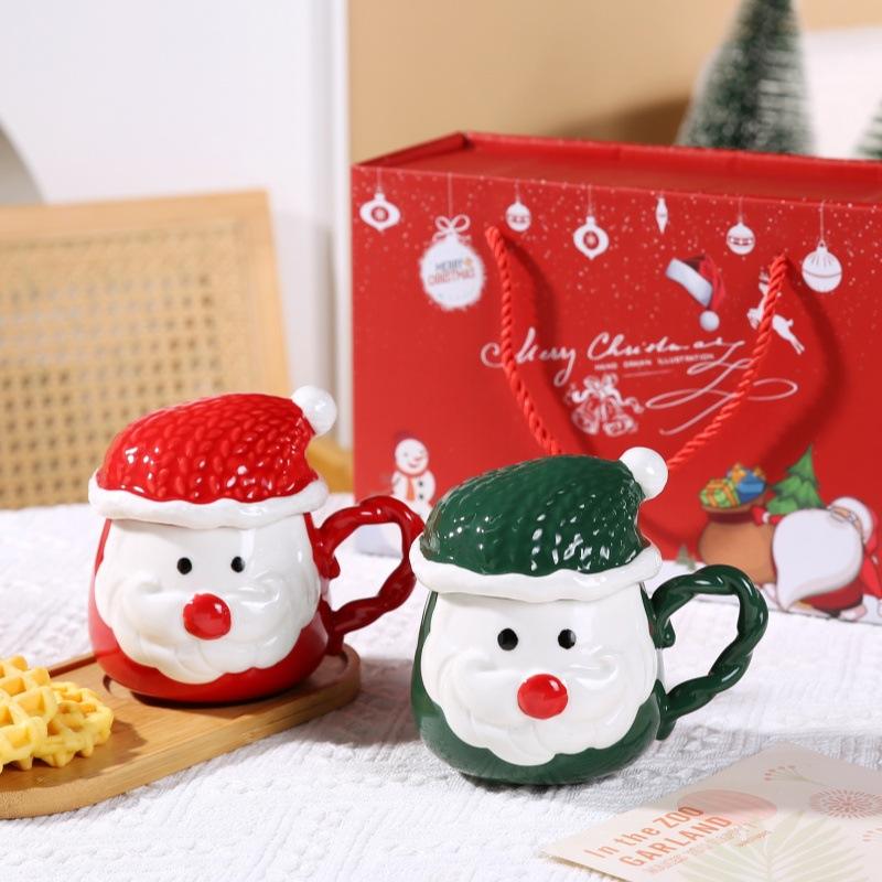 Lovely Cute Christmas Ceramic Cups with LIDS Household Couple Water Cups