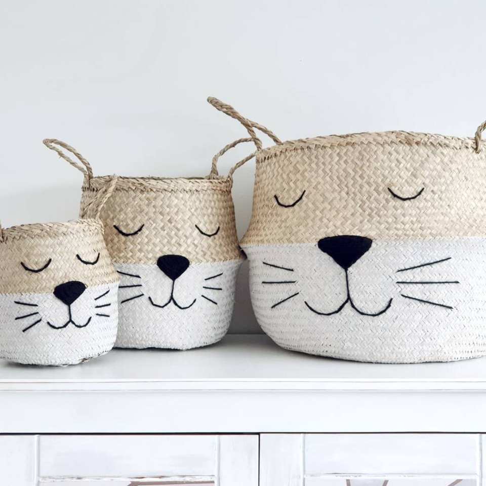 Lovely Giraffe Woven Straw Seagrass Belly Basket for Laundry Storage Eco Planter Pots Baskets Foldable Organization Box