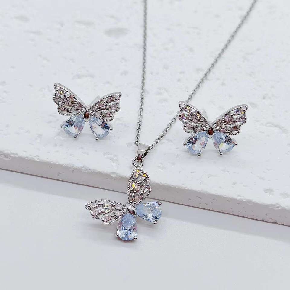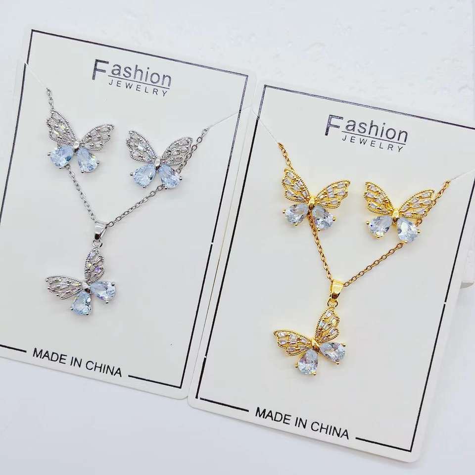 Lovely Gold Butterfly Jewelry Set Gold Plated Butterfly Necklace Plated Butterfly Ear Studs Wholesale CZ Earrings