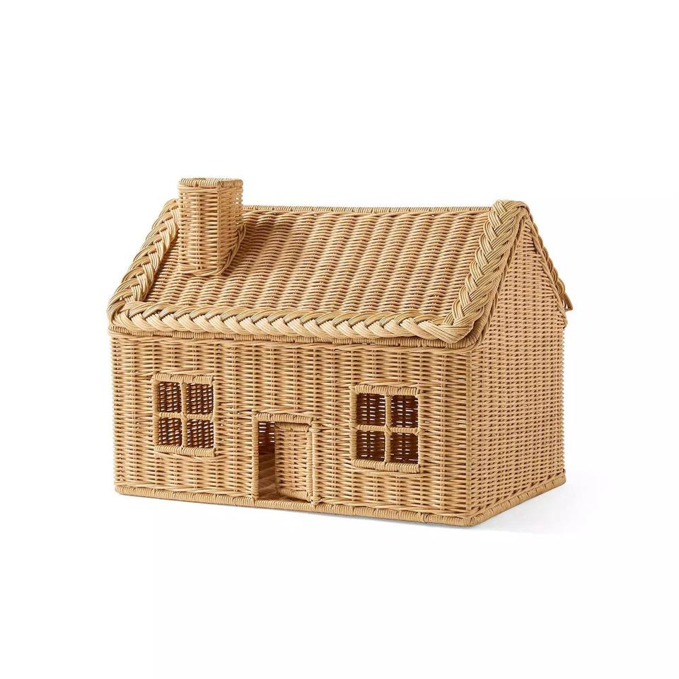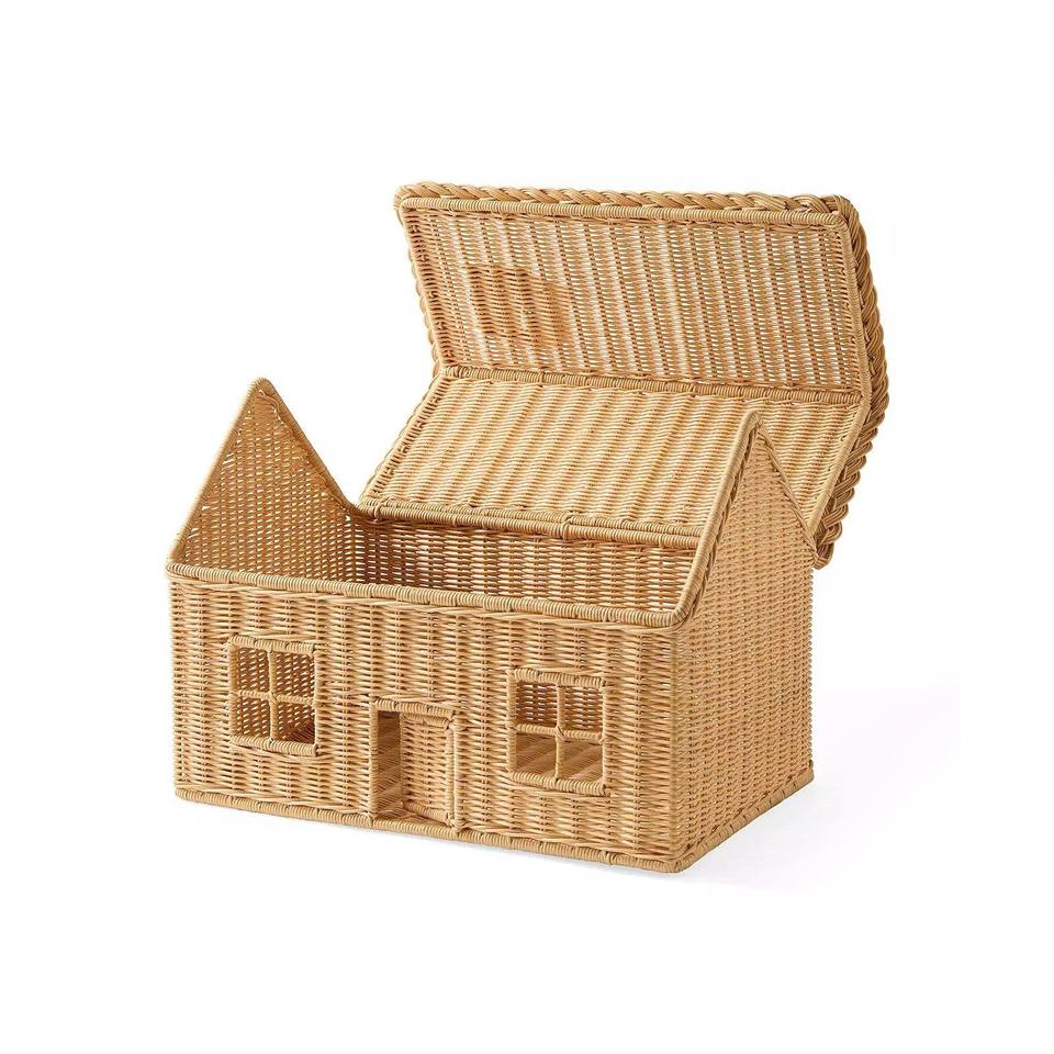 Lovely Handmade Rattan House Shape Basket Elegant Organizer For Home And Nursery Kid Room Decor
