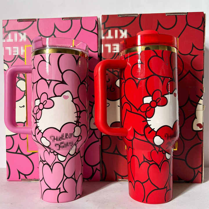 Lovely Luxury Presents Custom logo Cartoon Cat Cup Mugs Vacuum Flask Tumbler 40oz Insulated Water Bottle With Gift Box