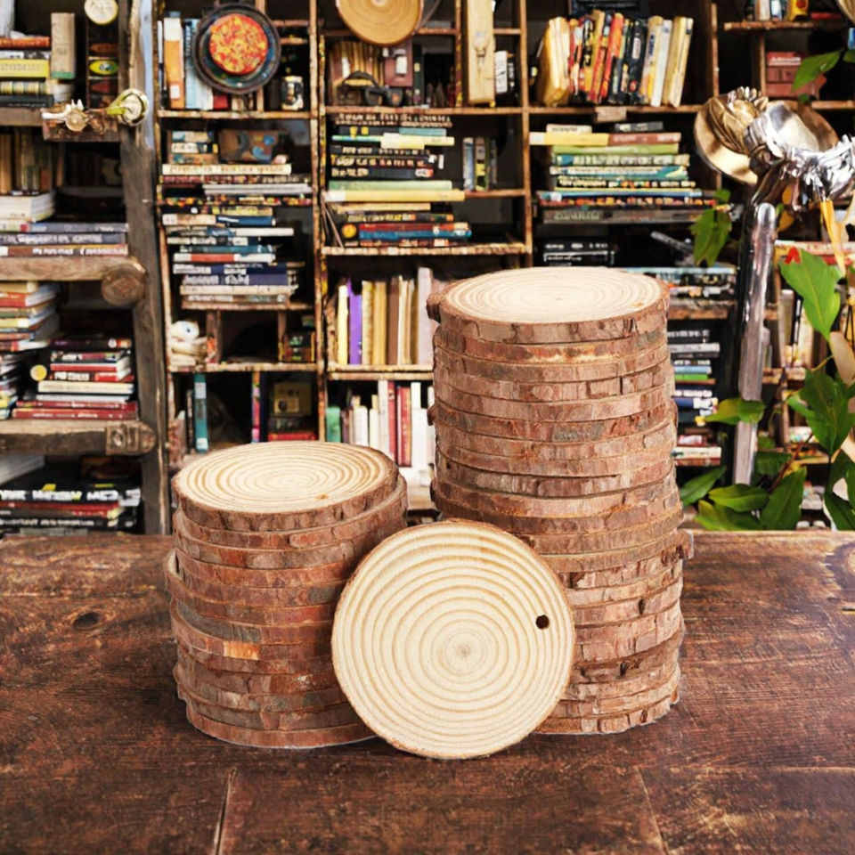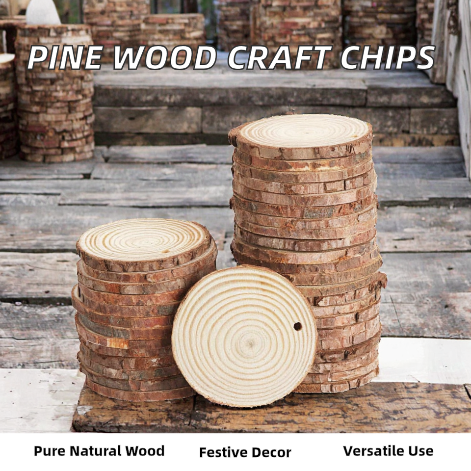 Lovely Painted Pine Wood Chips and Slices Oval Shape Natural Material for Crafts and Holiday Decorations