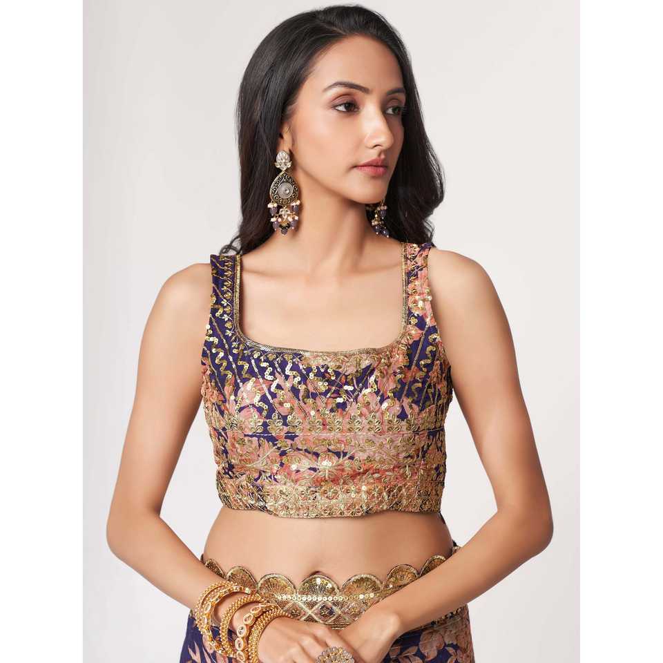 Lovely Purple Floral Print Organza Party Wear Saree With Blouse