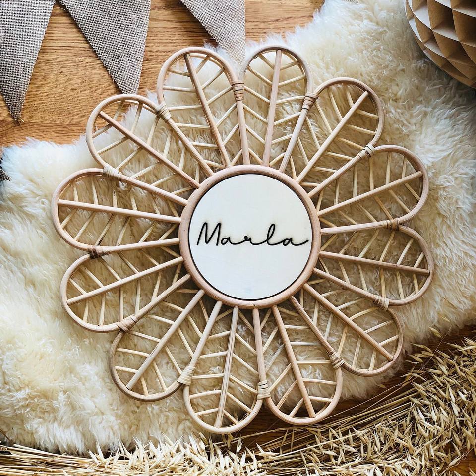 Lovely Rattan Name Board Flower Design Wicker Wall Signboard for Home and Shop Decoration with Customizable Texts