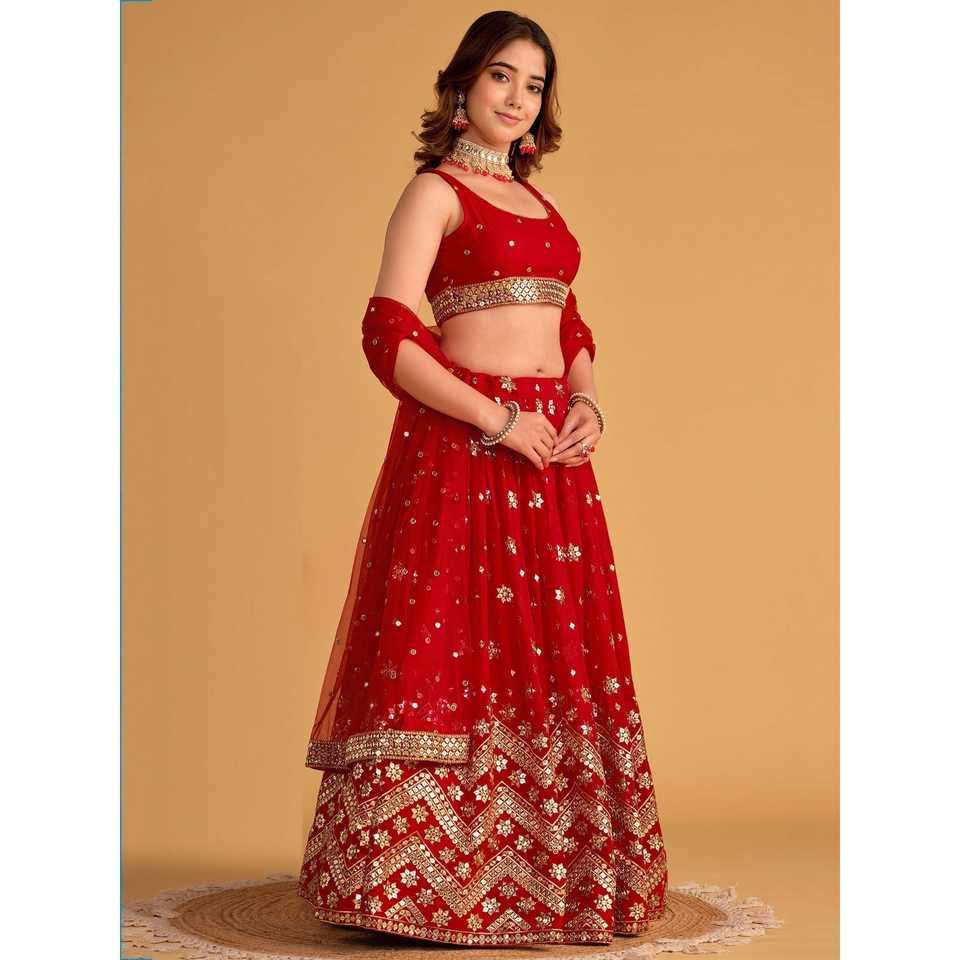 Lovely Red Sequins Georgette Engagement Wear Lehenga Choli