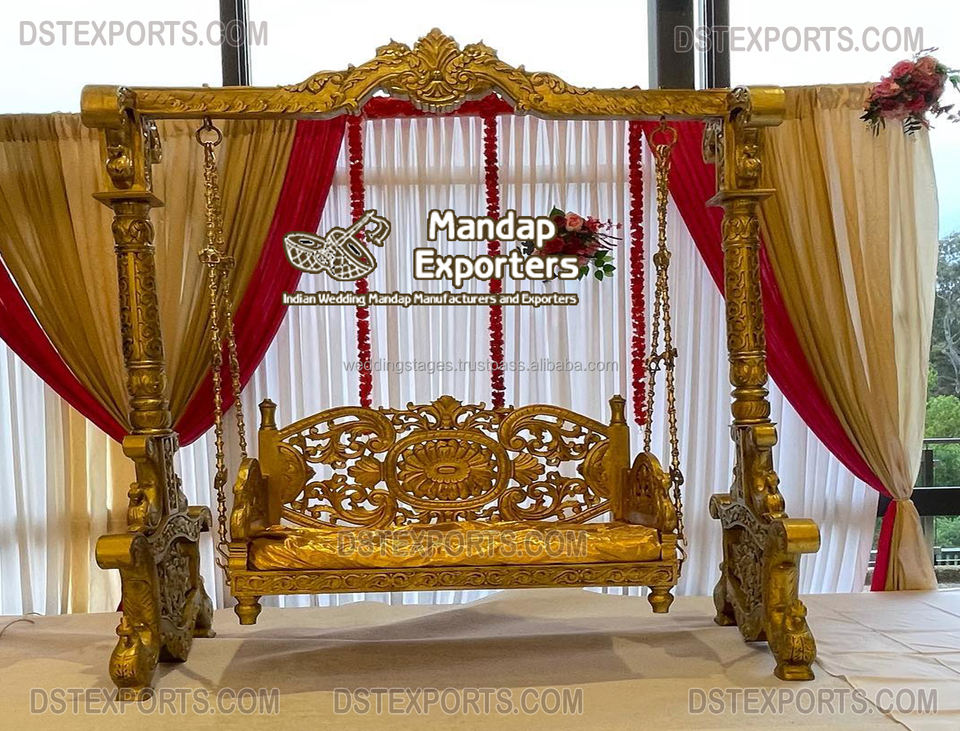 Lovely Sangeet Stage Swing Seat for Bride Arabian Mehndi Decor Stage Swing Set Golden Swing for Indian Wedding Decoration