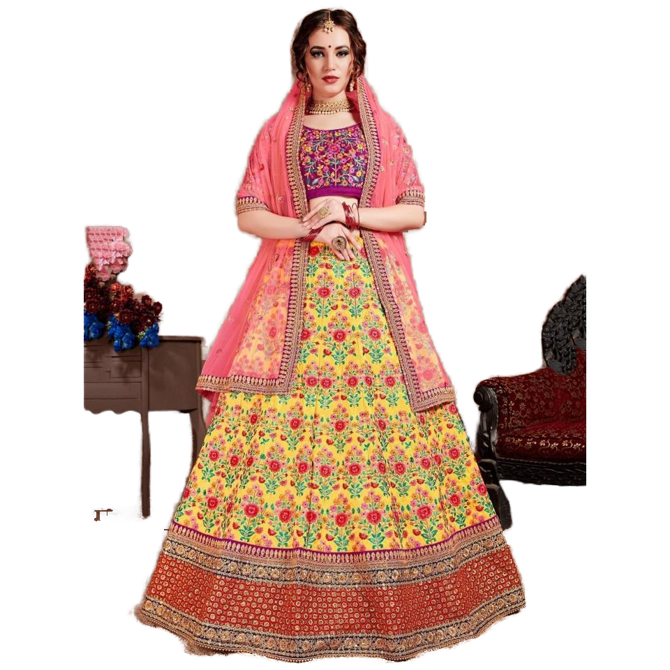 Lovely Yellow Embroidered Bridal Lehenga Choli Wedding Dresses with Intricate Designs