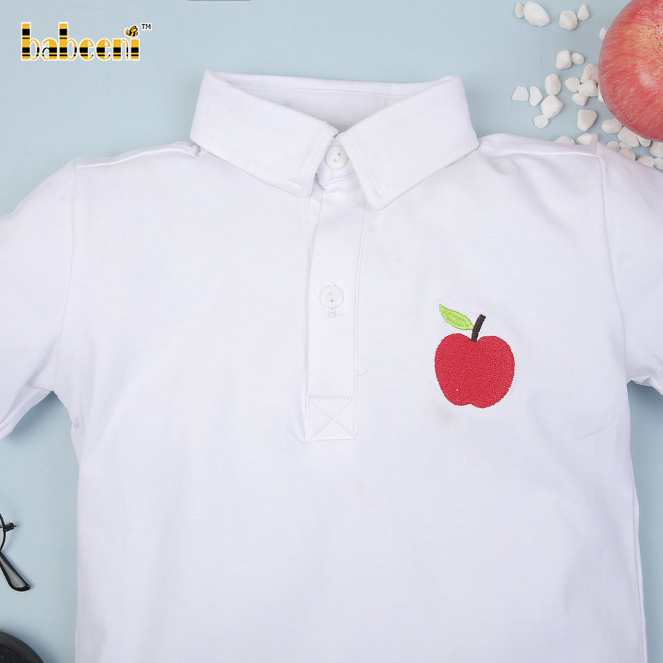 Lovely apple Appliqued Embroidery Boys Children Casual Knitted Polo Shirt-BB1040