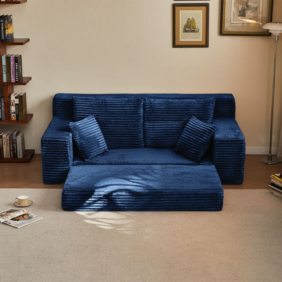 Modern Modular Loveseat Sofa Bed Convertible 2-in-1 Square Upholstered Durable Corduroy Fabric High-Density Foam Apartment Villa