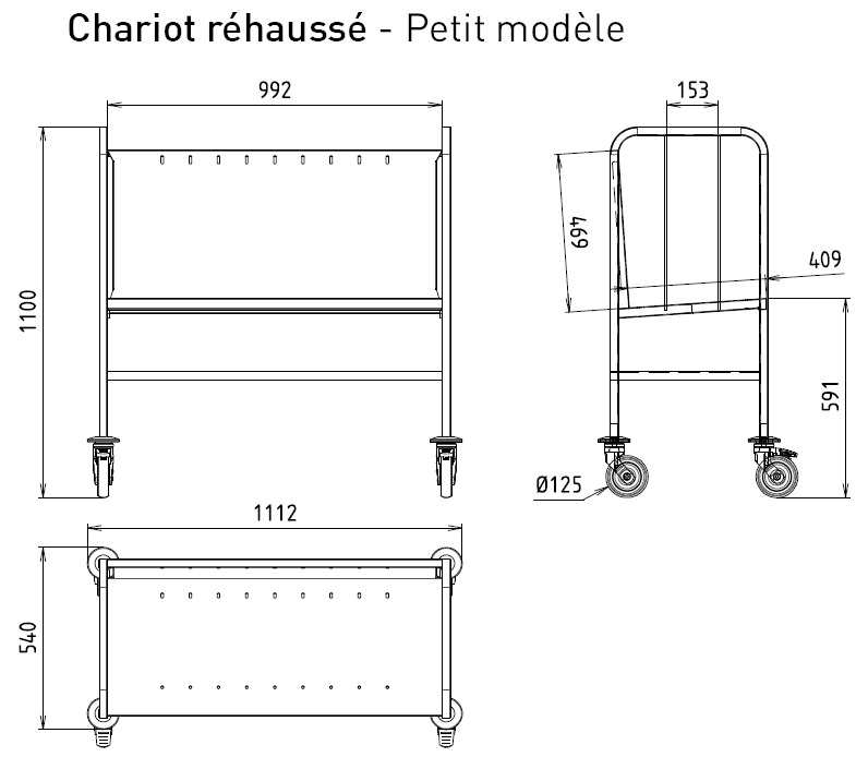 Trolley Size:1112x624x787mm plus the holder for Cutlery box and GN pan