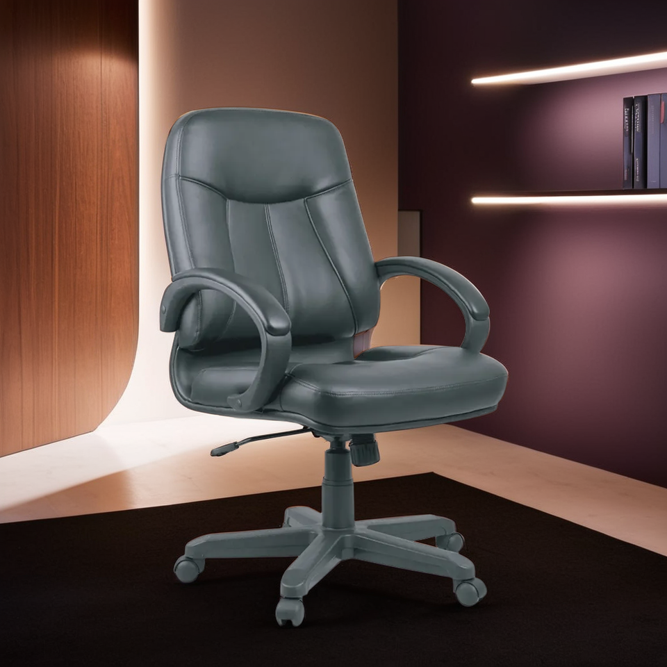 Low-Cost Modern Executive Office Chair Mediumback Leather with Swivel Cushion Armpad Furniture Foam