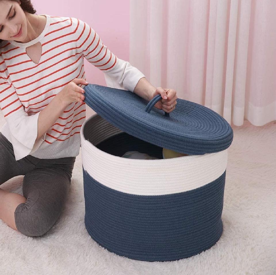 Low Cost Multi-Purpose Macrame Cotton Rope Storage Basket with Lid Hand Woven for Home Laundry & Toy Organization