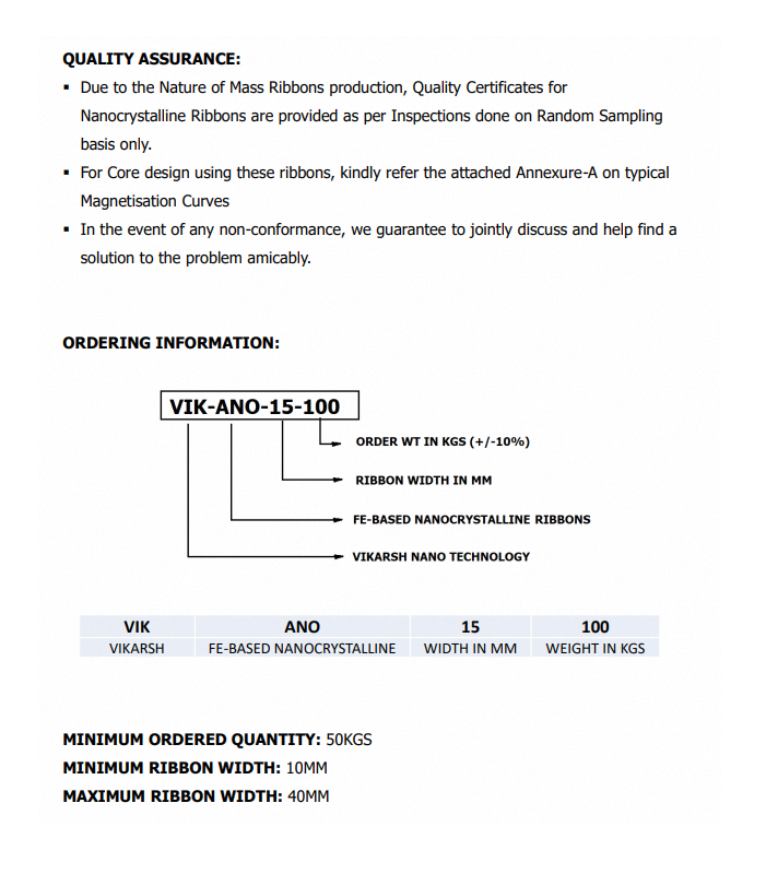 Nanocrystalline RibbonsGrade