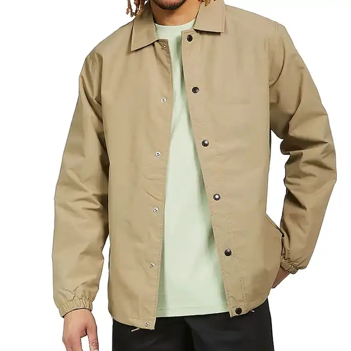Low MOQ 100% Polyester Lightweight Coach Jacket Men Button Closure Windbreaker Streetwear Custom Outdoor Jackets