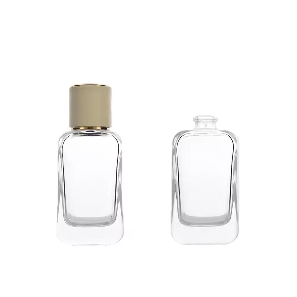 Low MOQ 50ml 100ml High End Thick Bottom Rectangle Empty Cologne Bottle Glass Perfume Bottle with Cap