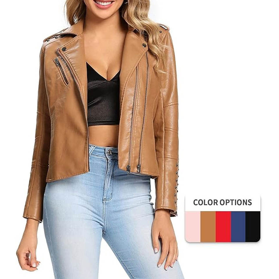 Low MOQ Custom OEM Design Women Leather Jacket For Sale Reasonable Price Quick Dry Women Leather Jacket