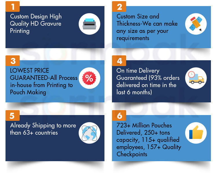 PET/ALU/PE, PET/METPET/PE/, PET/PE, etc.Material Structure