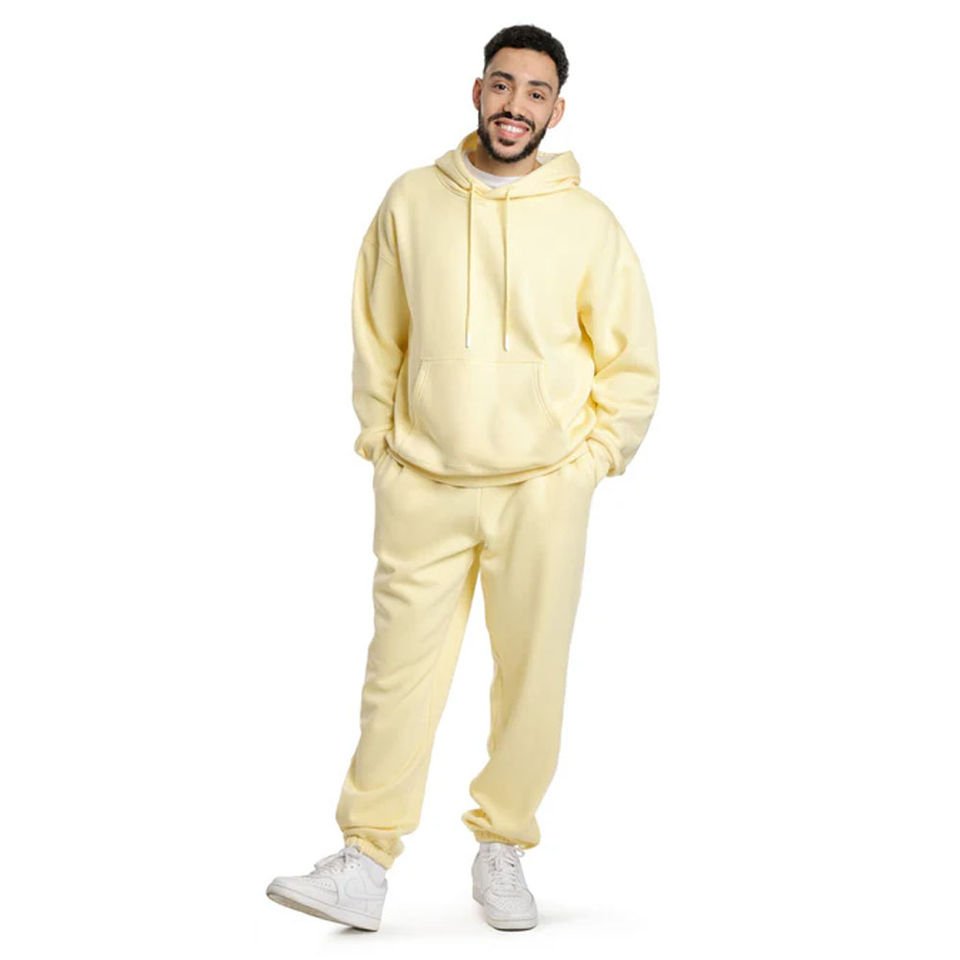 Low MOQ Factory Made Men Yellow Premium Soft Blank Hooded Eco-Friendly Breathable Polyester/Cotton Winter Casual Tracksuit