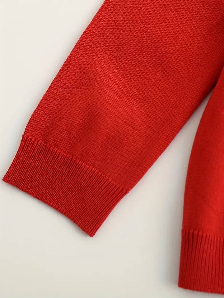 Low MOQ Girls&Boys Elegant Red Round-Neck Cardigan - Soft Polyester, Long Sleeve, Solid Color School Uniforms Style Sweater Coat