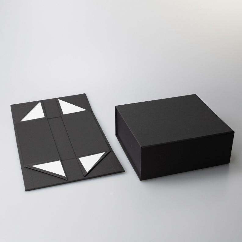 Low MOQ Luxury Black Folding Gift Box with Magnetic Lid Closure Embossed Matt Lamination Printing Available for Sale