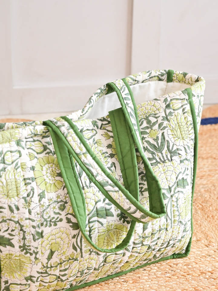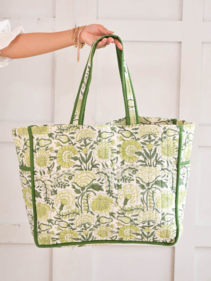 Low MOQ Quilted Cotton Hand Printed Bags Large Tote Bag Eco Friendly Earthy Sturdy Grocery Shopping Handmade Boho Shoulder Bag