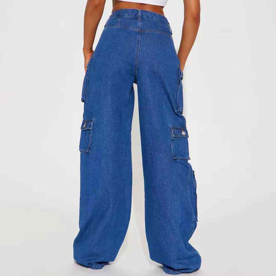Low MOQ Supplier Baggy Streetwear Denim Cargo Pants Women Flared Baggy Jeans Multiple Pocket Cargo Pants For Girls