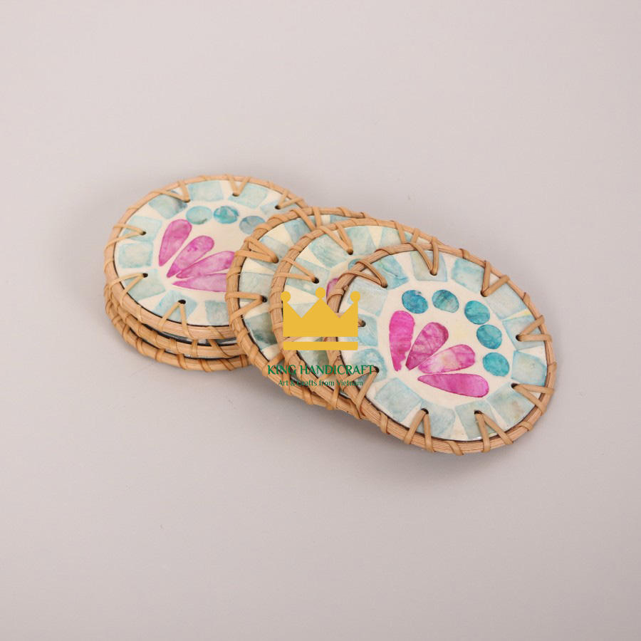 Low MOQ Vintage Eco-friendly Round Rattan Mosaic Table Mat and Cup Coasters Multi-Color Woven Wicker Crafts From Vietnam